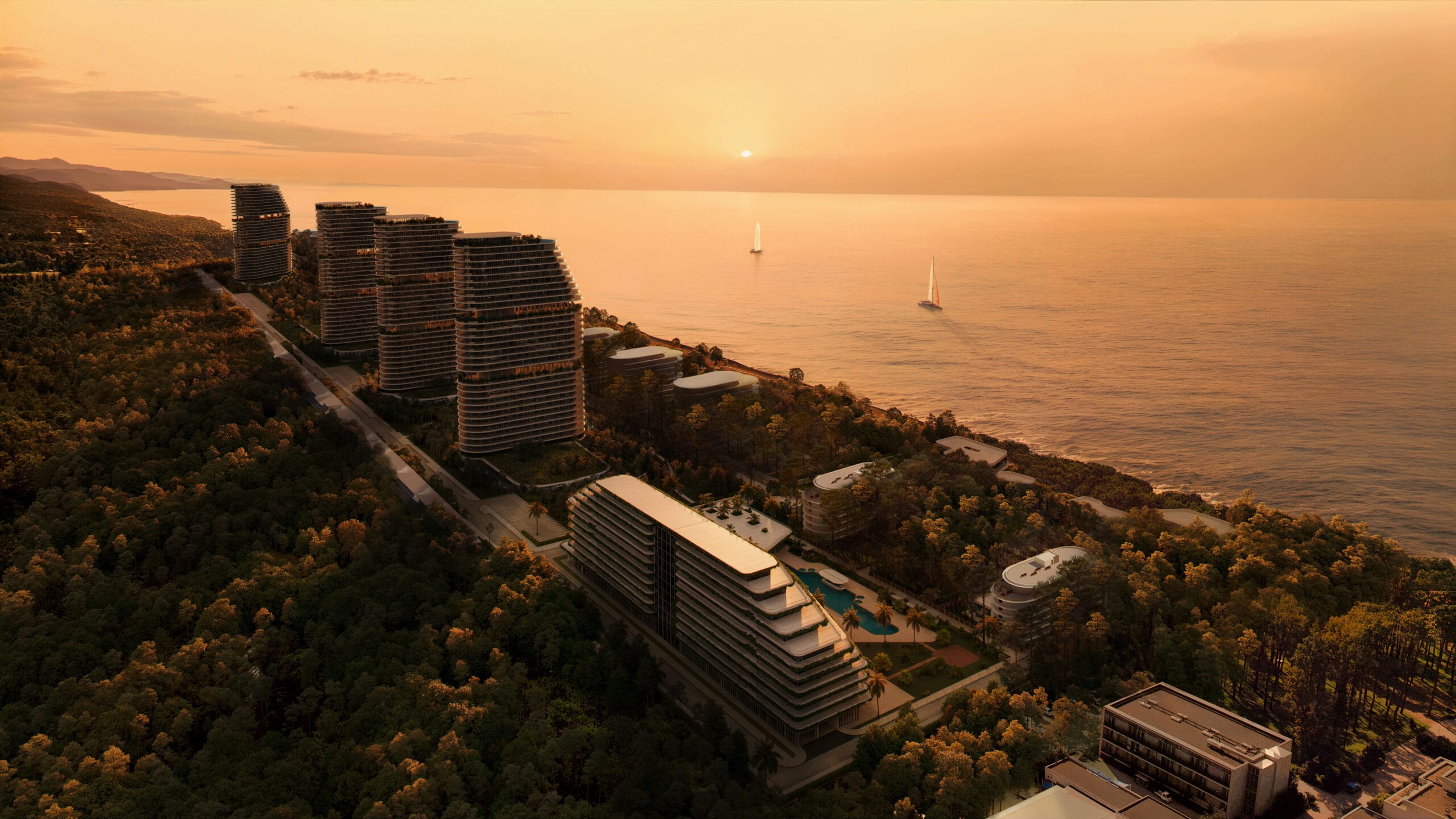 A gated premium complex in a unique natural location of Georgia: between the pristine Black Sea beach and the famous magnetic forest of Shekvetili.